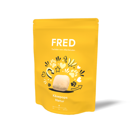 FRED & FELIAKäsepops Natur – purer Käsespaß für deinen Vierbeiner Unsere Käsepops Natur bestehen aus nur zwei natürlichen Zutaten: Kuhmilch und einer Prise Sal...